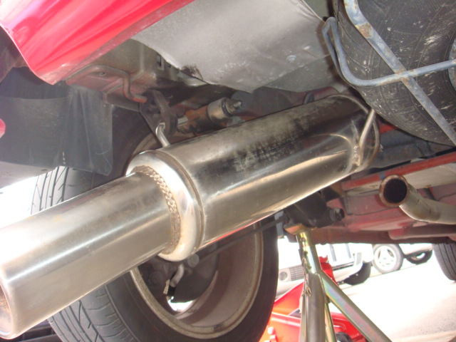 近くのカーショップへ走りオフセットの変更できるマフラーゴムを購入、