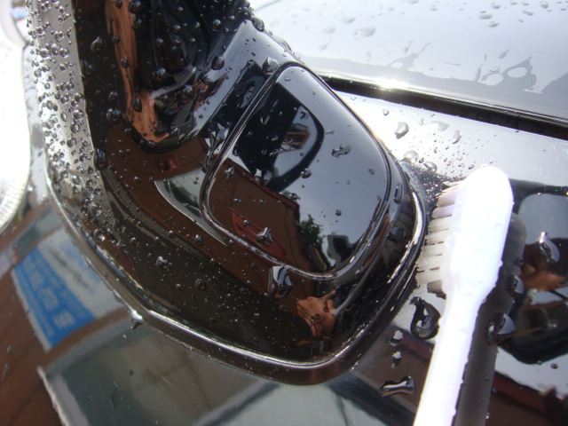 でもまだ終わりではありません。ボディの隙間に詰まった古いワックスや汚れを取っていきます。