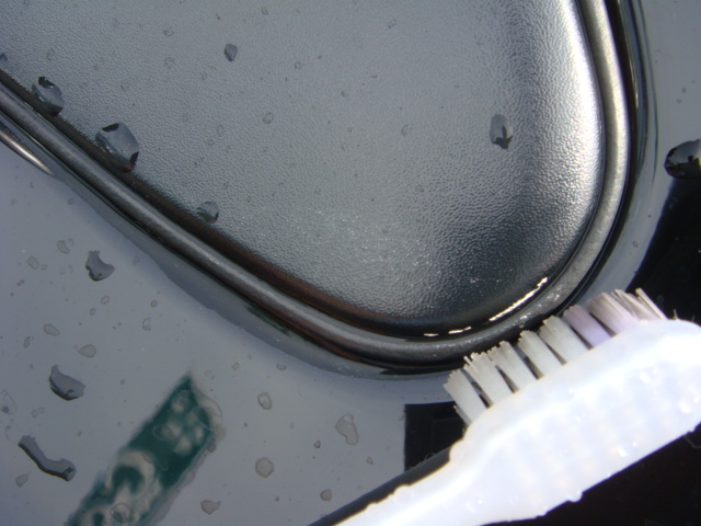 キズを付けないようにやわらかいブラシで水をかけながらこすります。