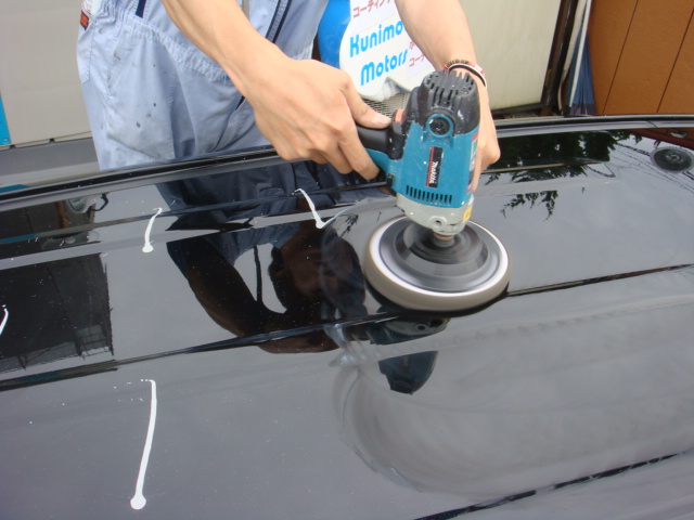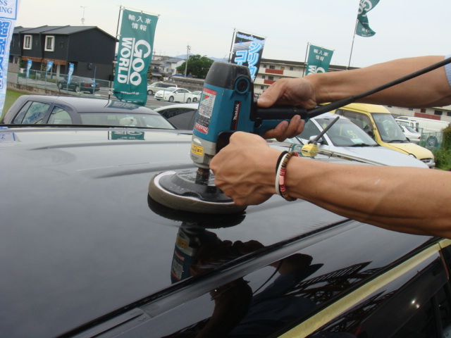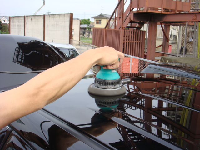 そして最後にダブルアクションのポリッシャーで磨きのムラを取ります。よくオーロラのようなムラムラが見える車がありますがこれは磨きの仕上げが悪い証拠です。