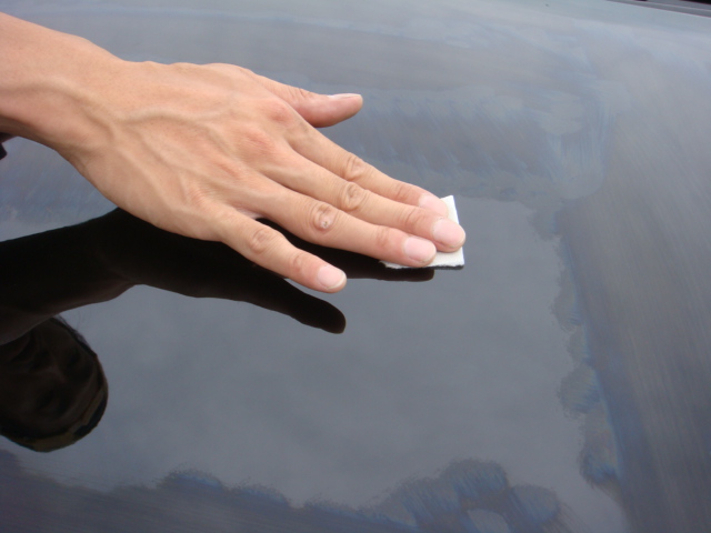 ツルツルに見える車のボディをさわってみるとザラザラ。。。。こいつが犯人です。