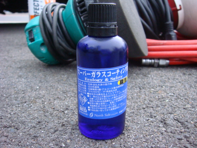 ソリッドのブラックなので撥水よりも親水の方が良いと言う事でスーパーガラスコートにて作業します。