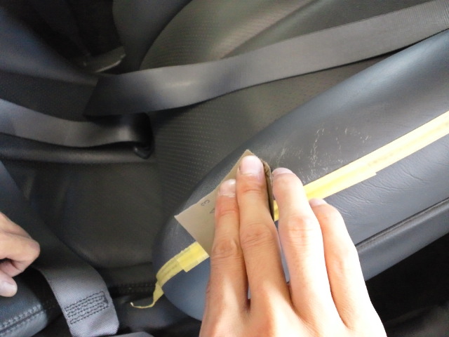 今回はタイヤショップの方から依頼が入りました。お客様のベンツの革シートの背もたれのサイド部分の擦れです。