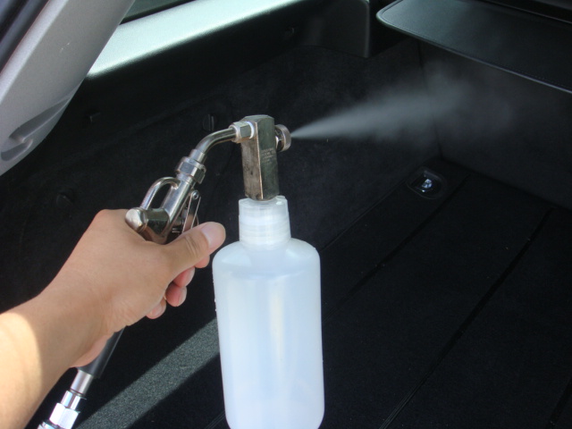 その後、専用ガンにて室内にまんべんなく丁寧に薬品を吹き付けます。